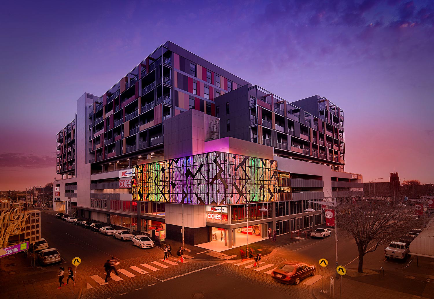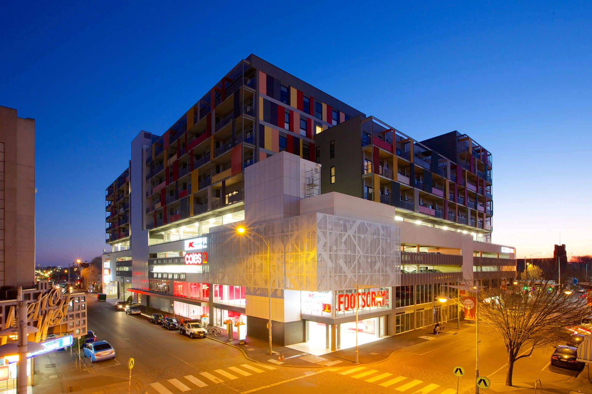 Suburb: Footscray, Description: Development comprising 234 apartments constructed above an existing five-level shopping centre, including refurbishment and extension of the centre anchored by Coles, Liquorland and Kmart, Role: Project Manager and Superintendent